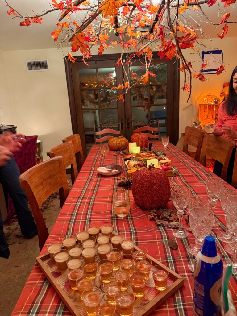 My friend Amy threw a Faux Fall girls’ night a couple of weekends ago, and it was epic. We had a wine tasting, festive Jell-o shots (totally recreating them for Halloween), and a delicious dinner with the most gorgeous tablescape and set-up.