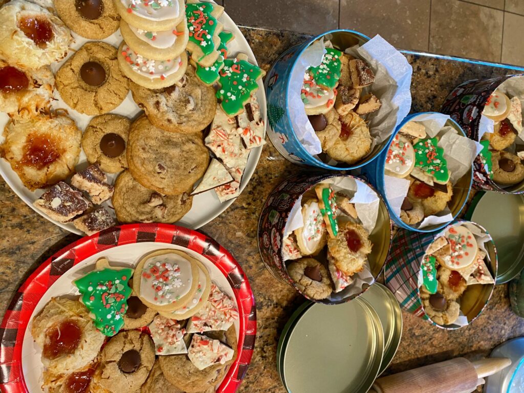 assorted macarons, and a million cookies that madre and I baked 😉 These are some of the cookie tins we took over to our neighbors: