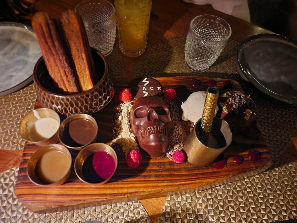 We were blown away by the food and the service. Everything was cooked perfectly – we shared guacamole, chips, oysters, and the Pilot and I enjoyed margaritas. For entrees, the kids got truffle mac and cheese and a chopped salad with chicken, while the Pilot and I enjoyed steaks and sides. We ordered three desserts (we want to try everything when we go out to eat lol) and the presentation was so unique – everything was on a board adorned with a lit sparkler.