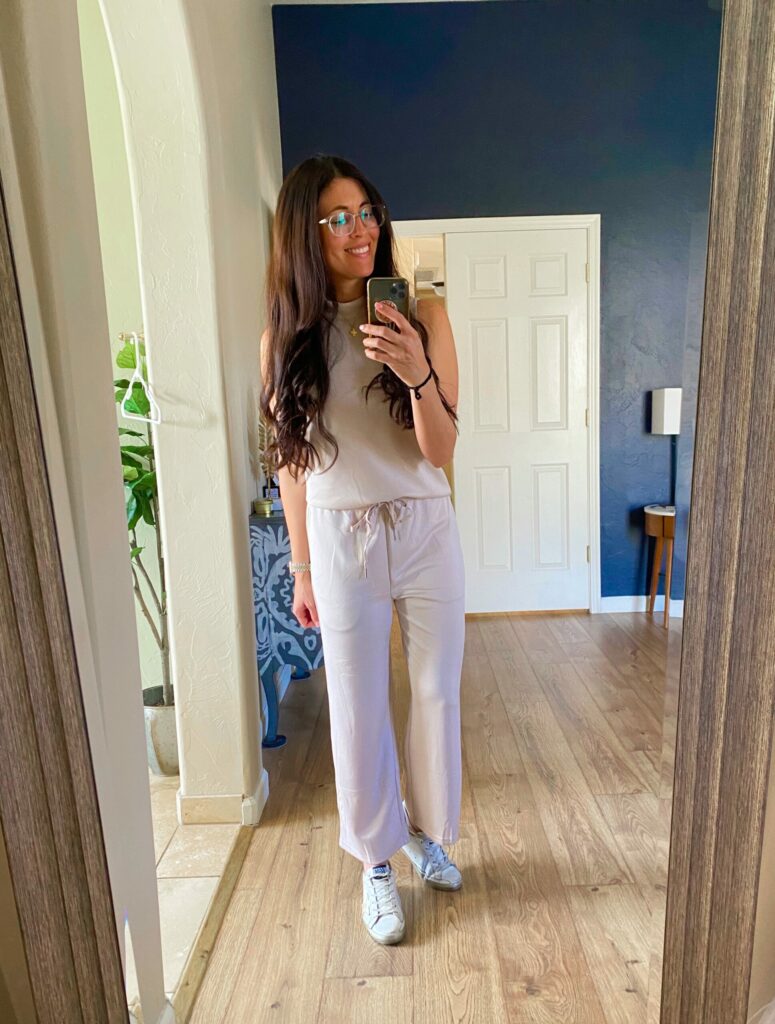 This Amazon set. It’s super similar to my Spanx Air Essentials set. The fabric is a little thinner, but still soft and dreamy, and excellent quality for the price. They have a ton of colors, too!