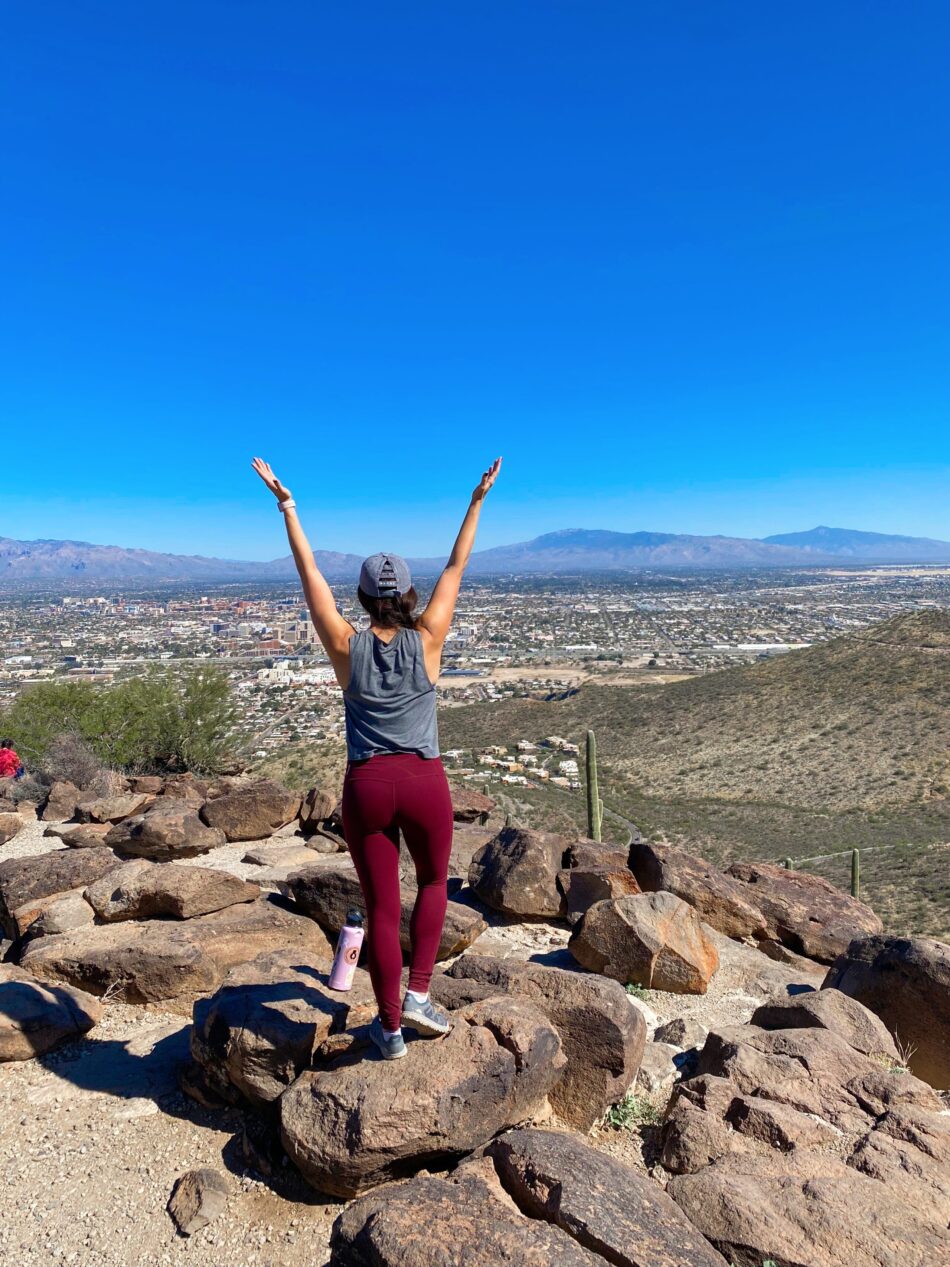 Walking with Maisey is one of the high points for both of us each day! We walk from 30-45 minutes, and I use this time to listen to a podcast or audiobook. She gets fresh air and exercise, and is a calmer, happier gal. It’s been raining a lot here in Tucson lately, so if it’s raining, I’ll still move my body in a gentle way to break up the workday, whether it’s a handful of Zumba songs, a Sculpt Society dance cardio round, or some mobility and stretching.