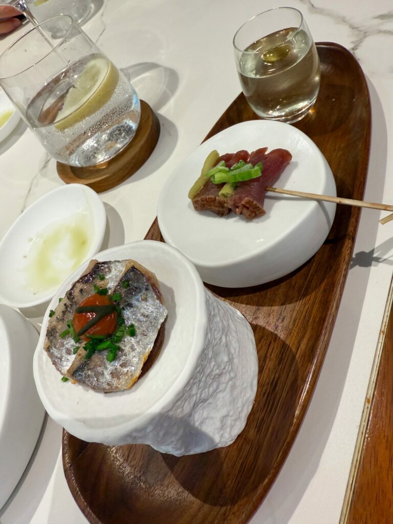 (the liquid in the glass to the far right was “water gazpacho.” It was clear but tasted exactly like gazpacho!)