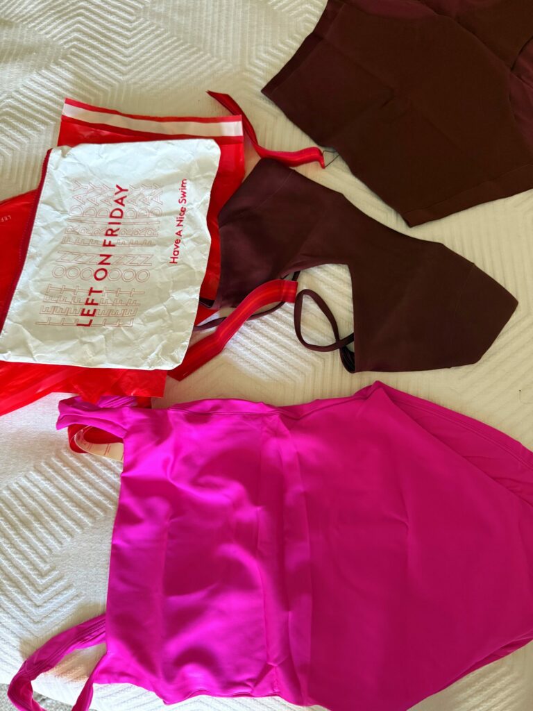 My friends at Left On Friday sent me some new suits! It was my first time trying this brand and I was blown away by the super light compressive fabric (I sized up to a medium after reading a ton of reviews online and it still felt like it held everything in), fit, and quality. It’s totally seamless and they have a ton of colors. I ended up choosing this one piece, and this top + these bottoms. The bottoms I chose had the most booty coverage and feel like this is my new fave swimsuit brand. Both suits are linked here.