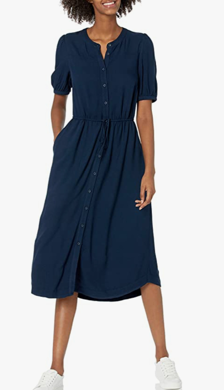 A button-up dress to wear with sandals or sneakers