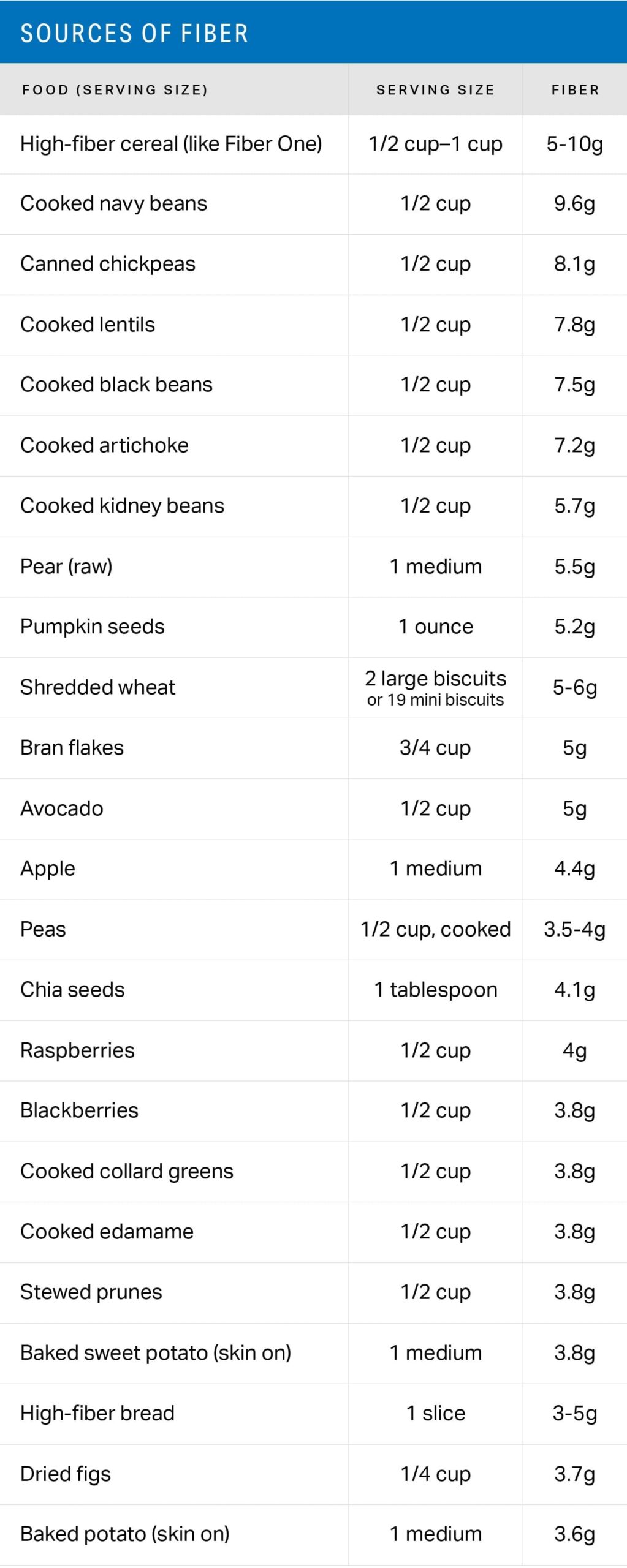Here’s a breakdown of what foods to include in your meals to reach your daily fiber requirements: