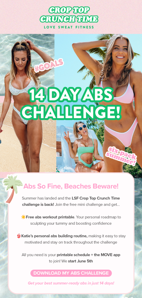 Our 2023 Crop Top Crunch Time (mini) Challenge is here! This is a FREE 14 day abs challenge you can do at-home in 10 minutes or less.
