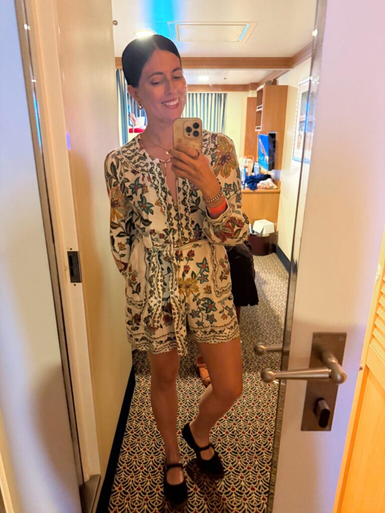 For excursions, I’ll change it up depending on where we’re going, but if it’s a beach day, I’ll just wear my suit with jean shorts and a coverup, or if it’s not swimming or beach-related, I’ll wear a dress or a set with sneakers (like Vejas or Sambas).