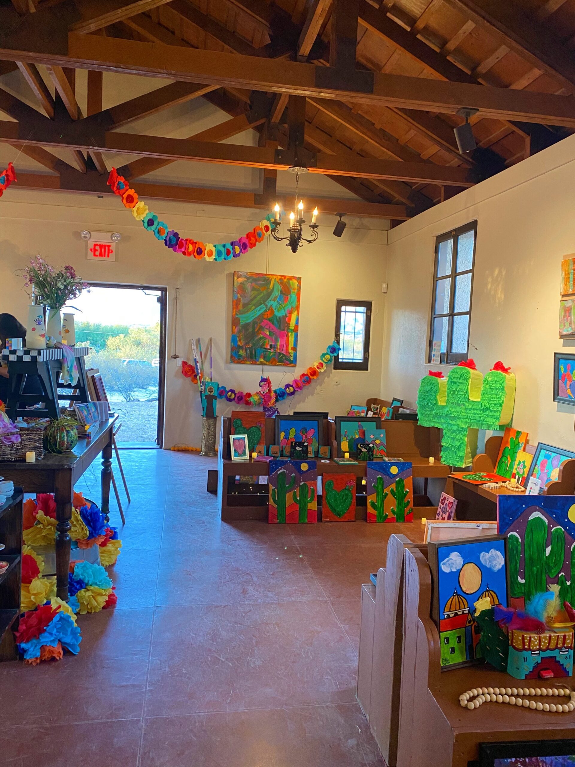 (pics to an art show we attended by the Boys and Girls Club. I got the sweetest greeting cards and a javelina painting for P’s room! Dress is here and P is still loving her Vivobarefoots.)