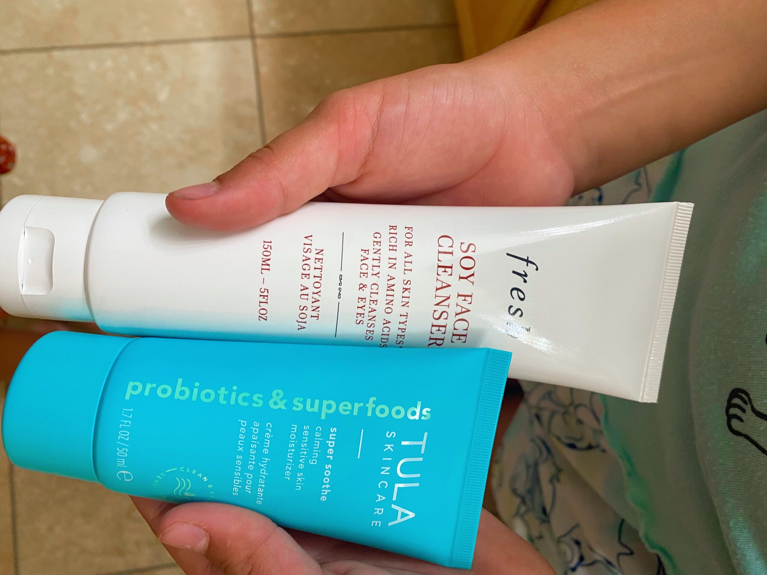 I wanted to get her something gentle with not-so-sketchy ingredients, and in the end, we decided on this face wash (which I’ve used in the past and it’s good for sensitive skin like ours) and this moisturizer. The moisturizer is hydrating without being greasy, and the combo of the two has been a good starting point for her skincare routine.