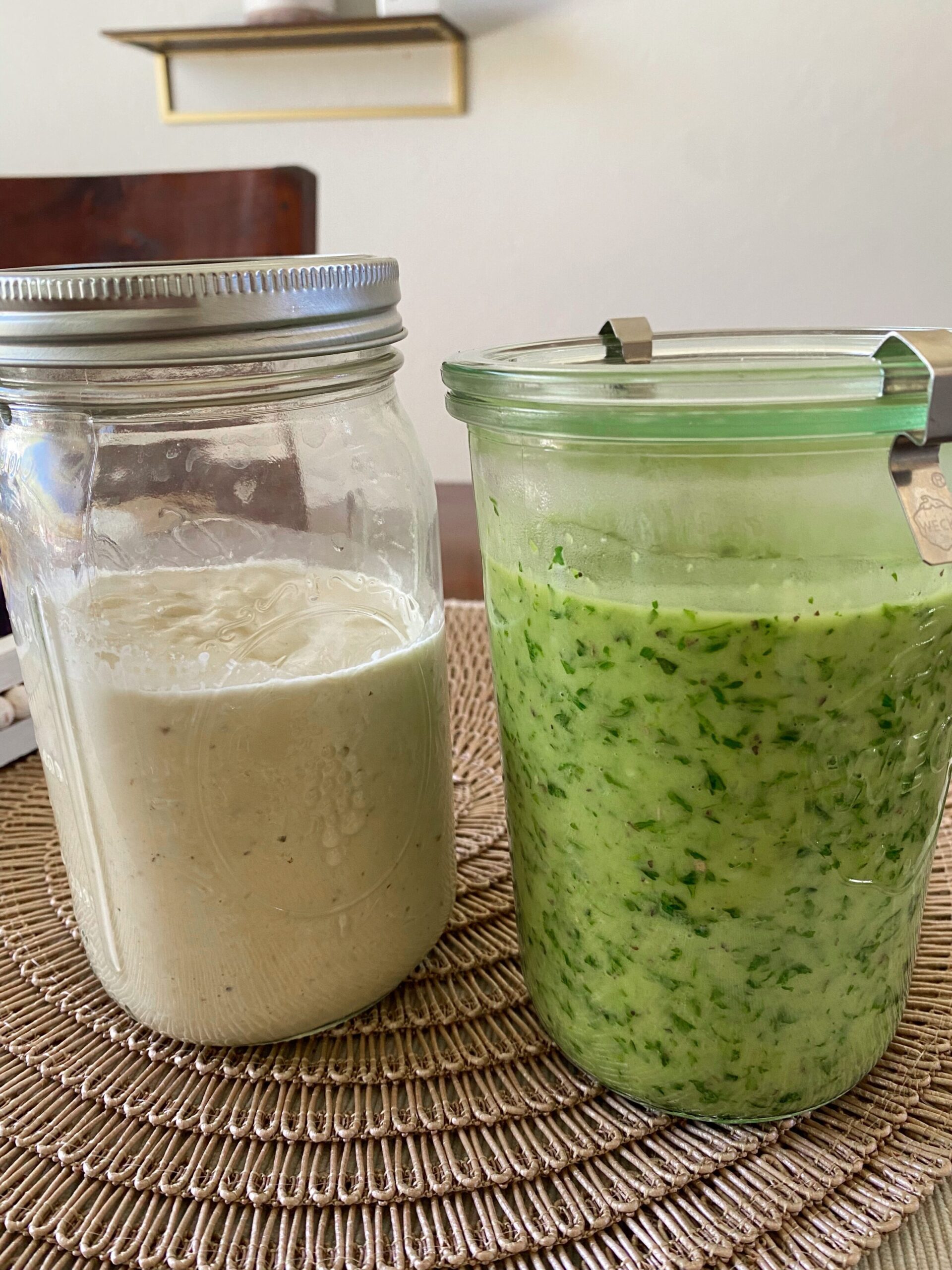 – Caesar salad with homemade sourdough croutons (this is the dressing)