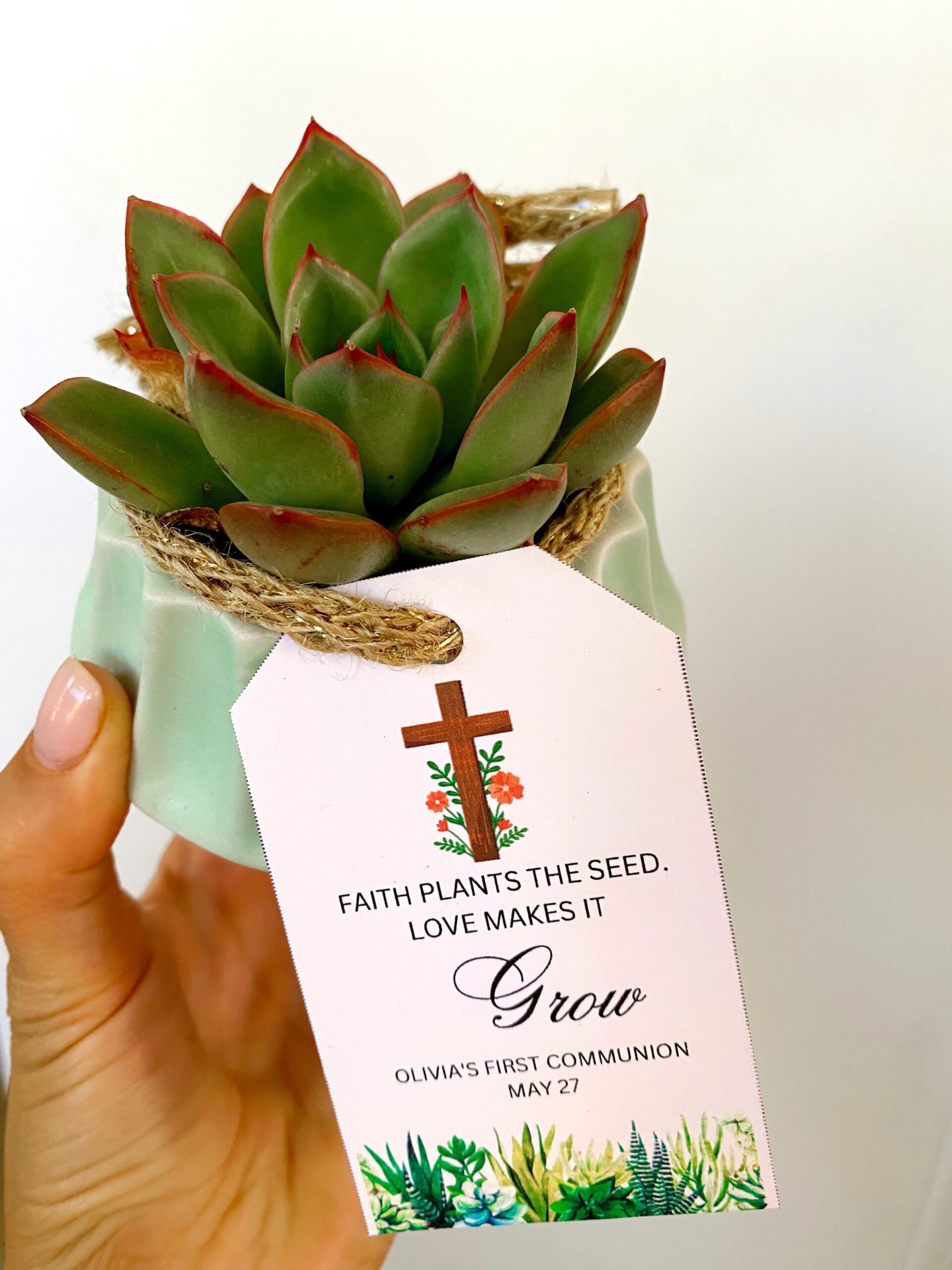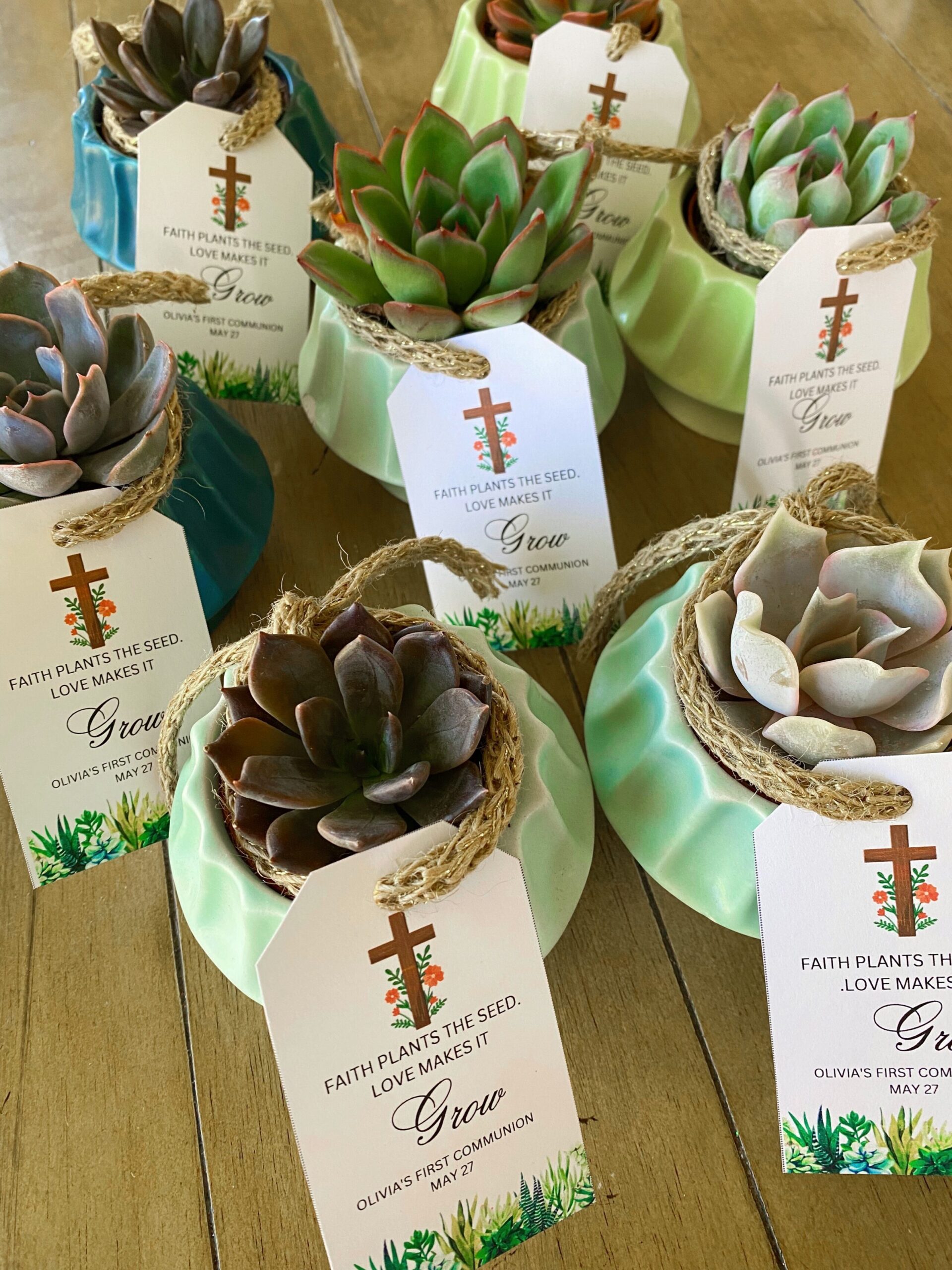 Here are the favors I put together! The succulents are from Trader Joe’s and I added little tags I made on Canva and printed on card stock.