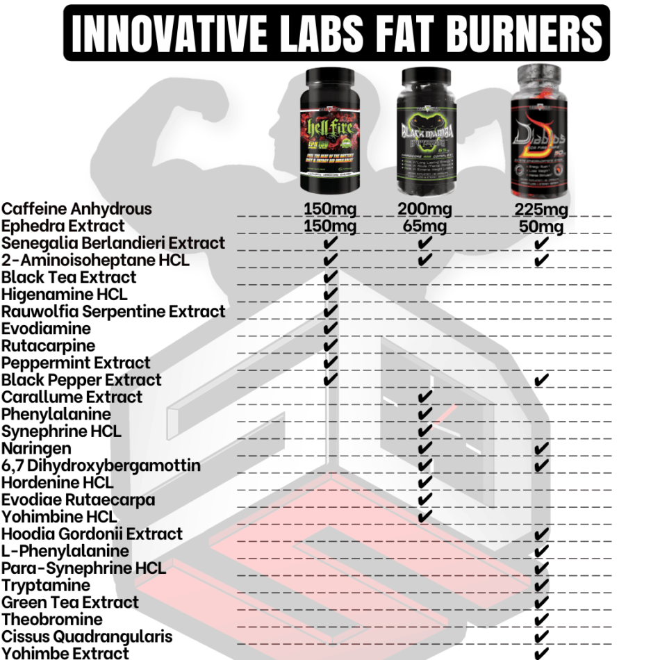 Have you ever felt confused when it comes to choosing between different products from the same brand? It happens to all of us! Today we’re here to help you with Innovative Lab’s fantastic trio of fat burners: Hellfire, Black Mamba, and Diablos ECA. In this post, we’ll be comparing Hellfire VS Diablos ECA and Black Mamba and Diablos. And if you’re curious about other comparisons, we’ve got you covered! Take a look at some of our other blogs below and discover even more valuable insights!