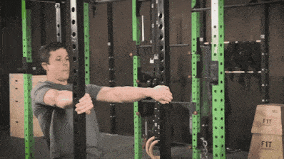 - Grab the bar with an overhand grip, slightly wider than shoulder-width (palms facing AWAY from you).