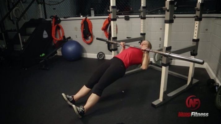 When doing this movement, you only need a bar to lean back from and your body weight. There’s also no extra stress on your back, like with a traditional barbell row.