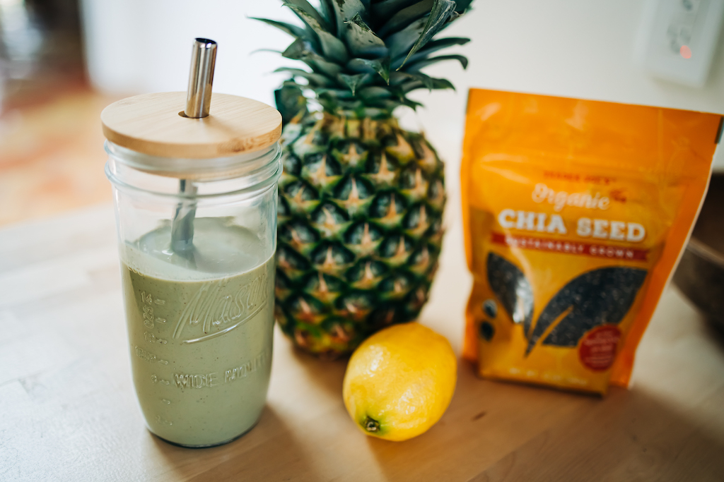 Some of my favorite nutrient-dense options are steamed vegetables, lean proteins, and healthy fats (like avocados, coconut oil, nut butters, etc.) to help replenish lost nutrients and rebuild strength. If you’re still feeling a little green but want to get nutrition, I like to do a smoothie with almond milk, berries, protein powder, a little coconut oil, and riced cauliflower. Another great combo is pineapple, coconut water, spinach, vanilla protein powder, and chia seeds.