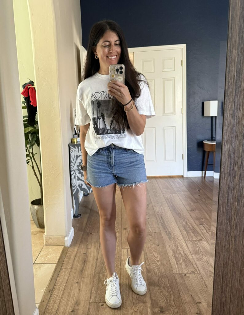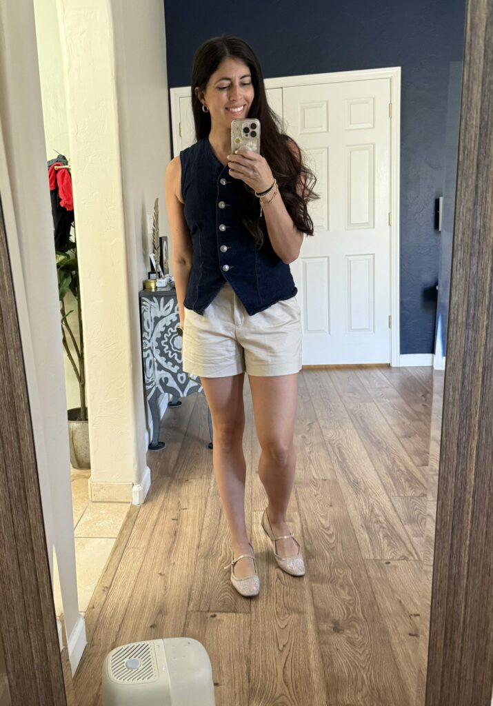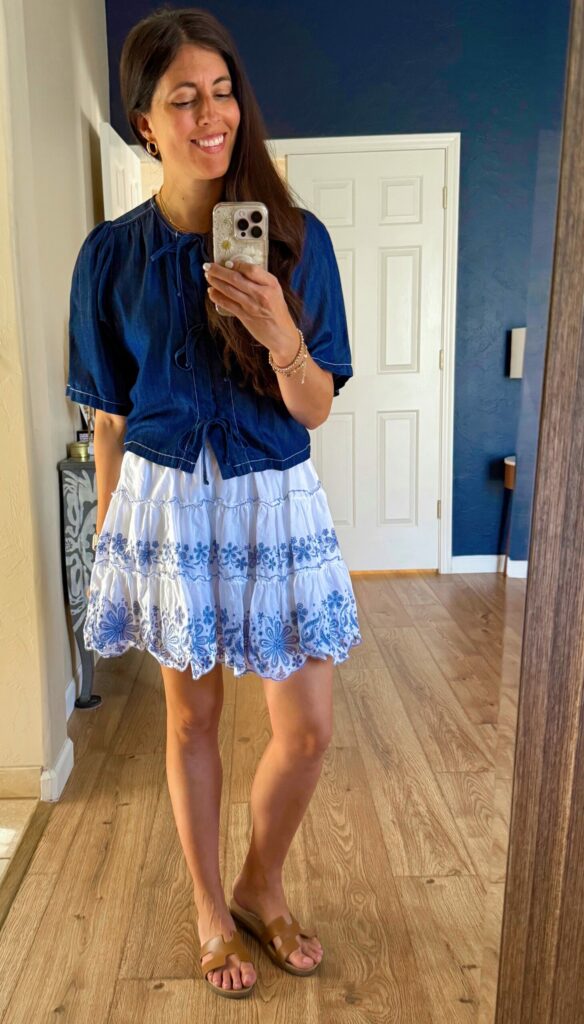I’ve worn this top so many times with different skirts and shorts this summer. I sized down to an Xs for this one.