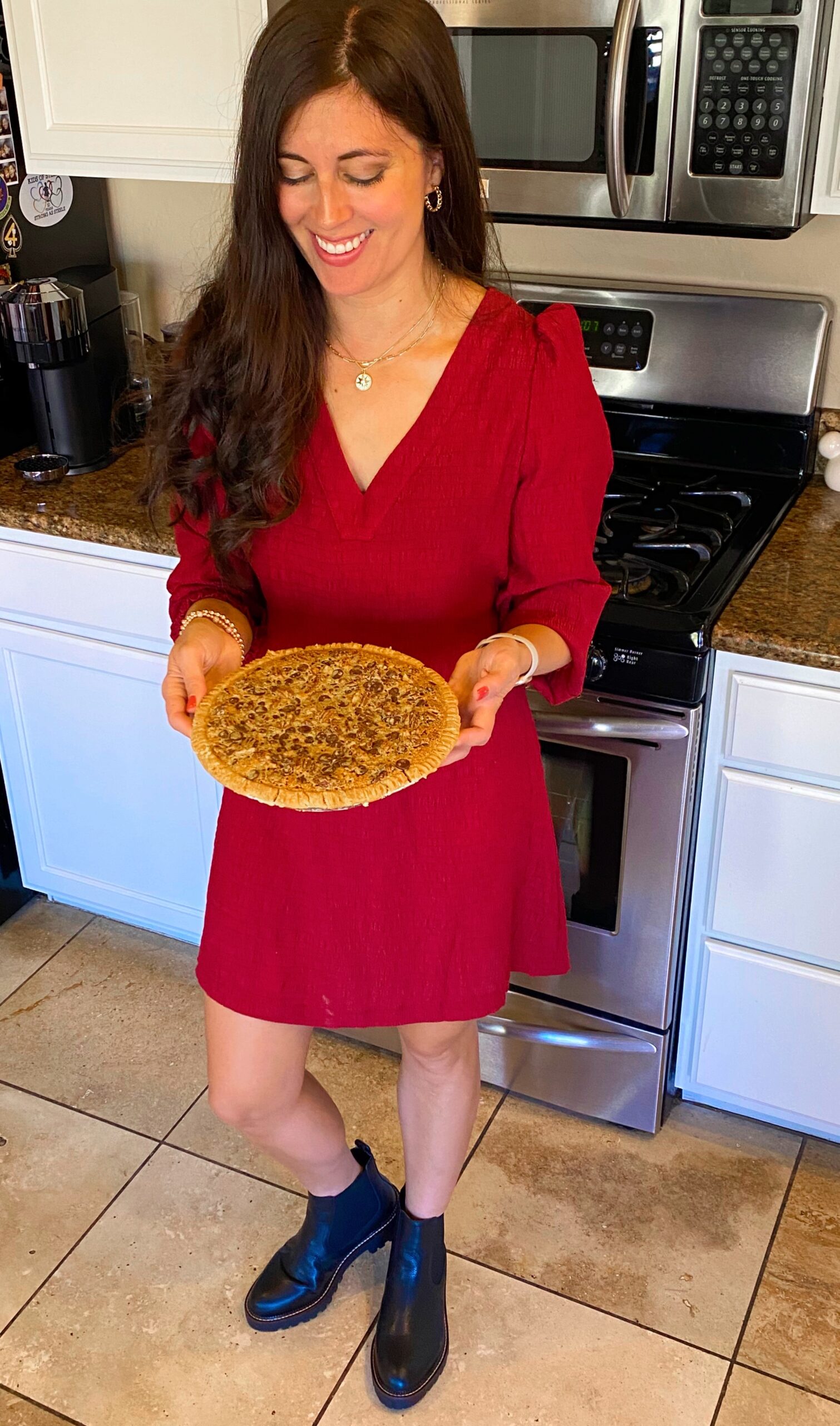 I was asked to bring a dessert to the festivities, so I made the chocolate pecan Bourbon pie from the new Ina cookbook. I typically don’t make *new* recipes for company or gatherings, but I know that Ina recipes will always be a hit.