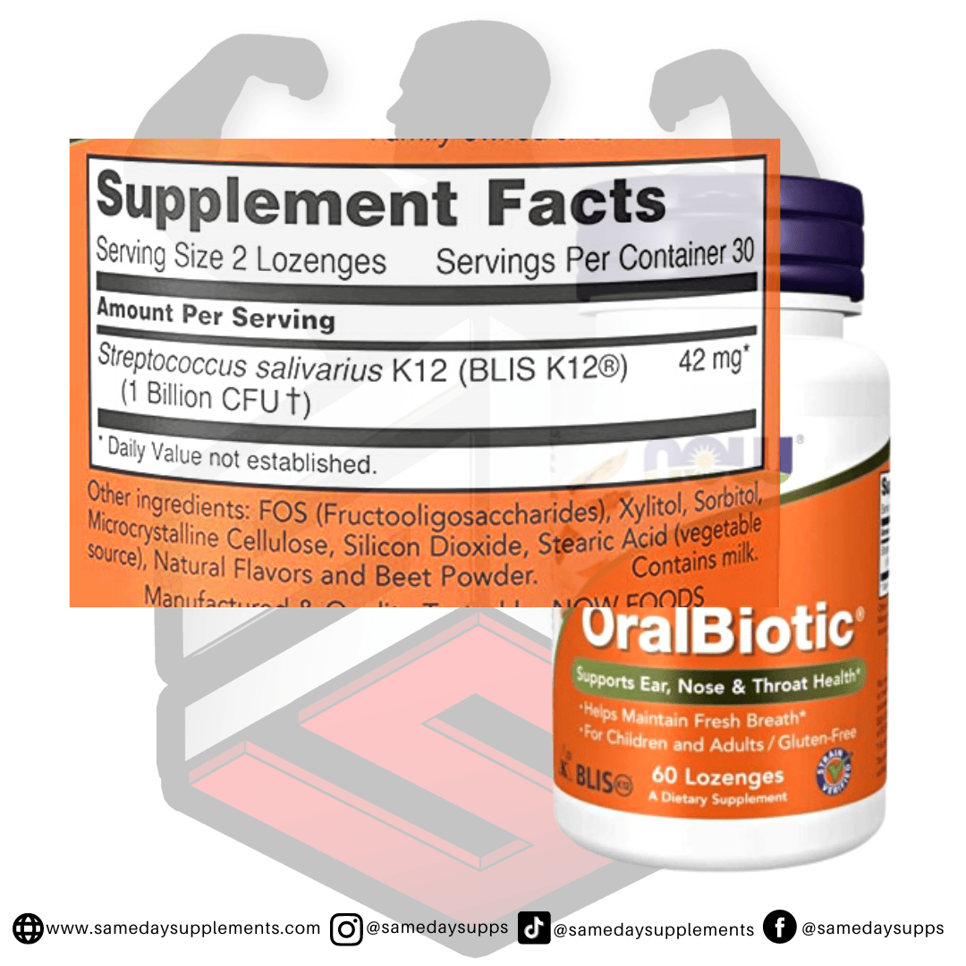 NOW Food’s Oralbiotic featuring 1 Billion CFU of Streptococcus salivarius K12 (BLIS K12) is a specialized probiotic designed to support oral health. The product is good for people who want to maintain good oral hygiene, prevent bad breath, and support the health of the throat, mouth, and upper respiratory tract. It is also suitable for those who may be susceptible to oral infections or those who frequently suffer from a sore throat or tonsillitis. However, it is always best to consult with a healthcare professional before taking any new supplement, especially if you have any pre-existing medical conditions or are taking medication.