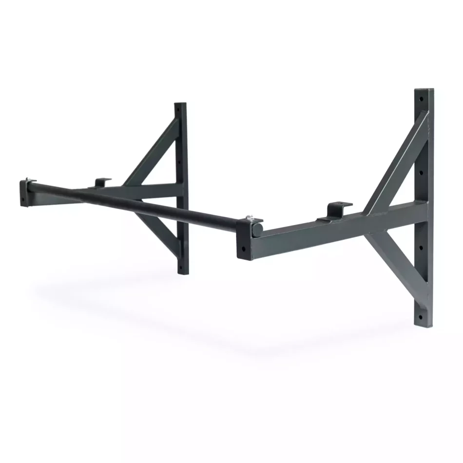 The bar itself can be attached at two points, between 14 to 26 inches from the mount, leaving plenty of space for exercises like kipping toes-to-bar and bar muscle-ups. (Just remember to measure your space and confirm you have the room to do these dynamic movements. You don’t want to hit your head on the ceiling or the wall behind you.)